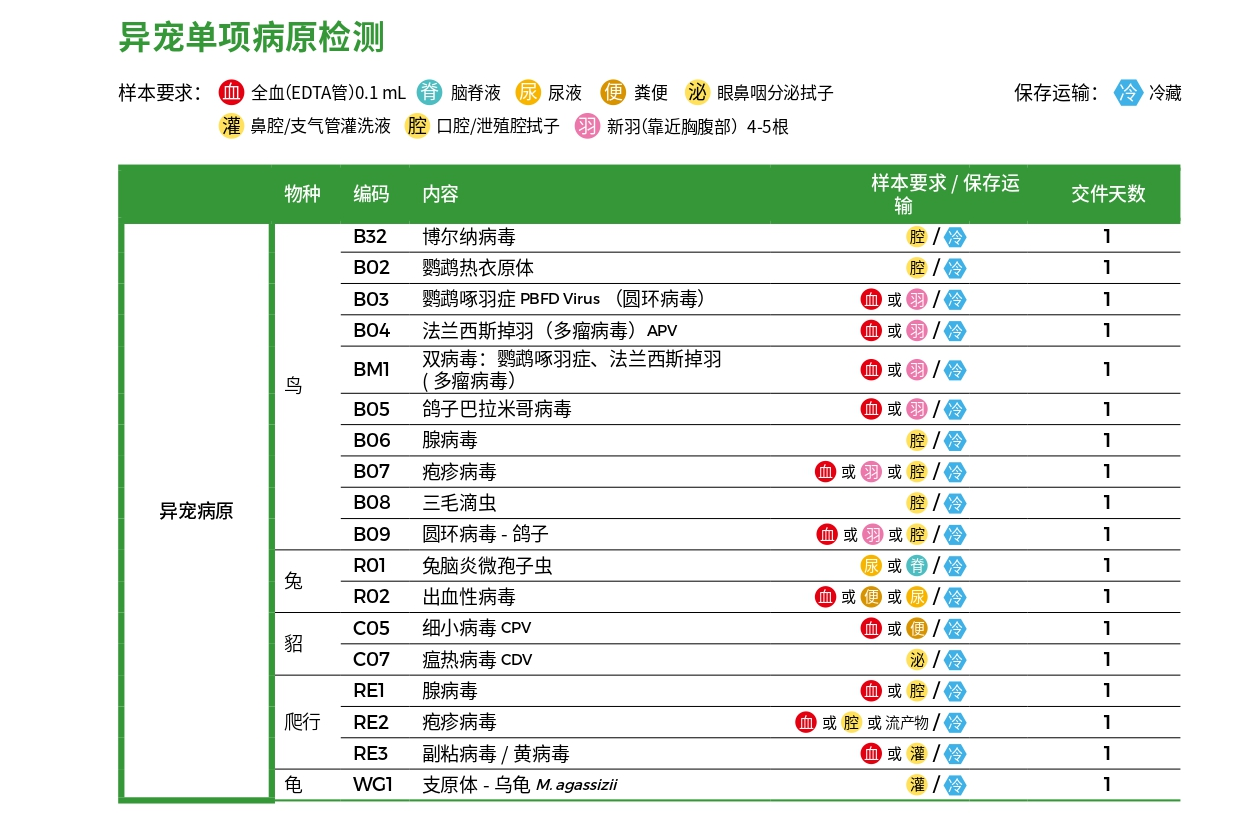 异宠单项病原检测—分子诊断检测项目表