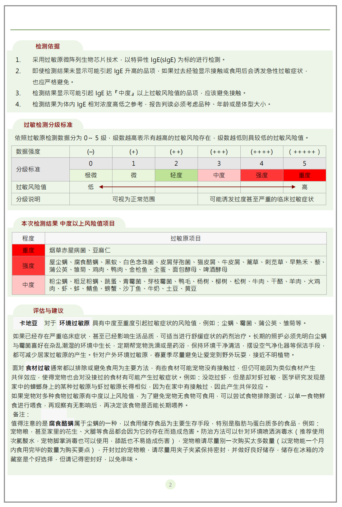 ⒊.检测结果为体内 IgE 相对浓度高低之参考,报告判读必须考虑品种、年龄或是体型大小。