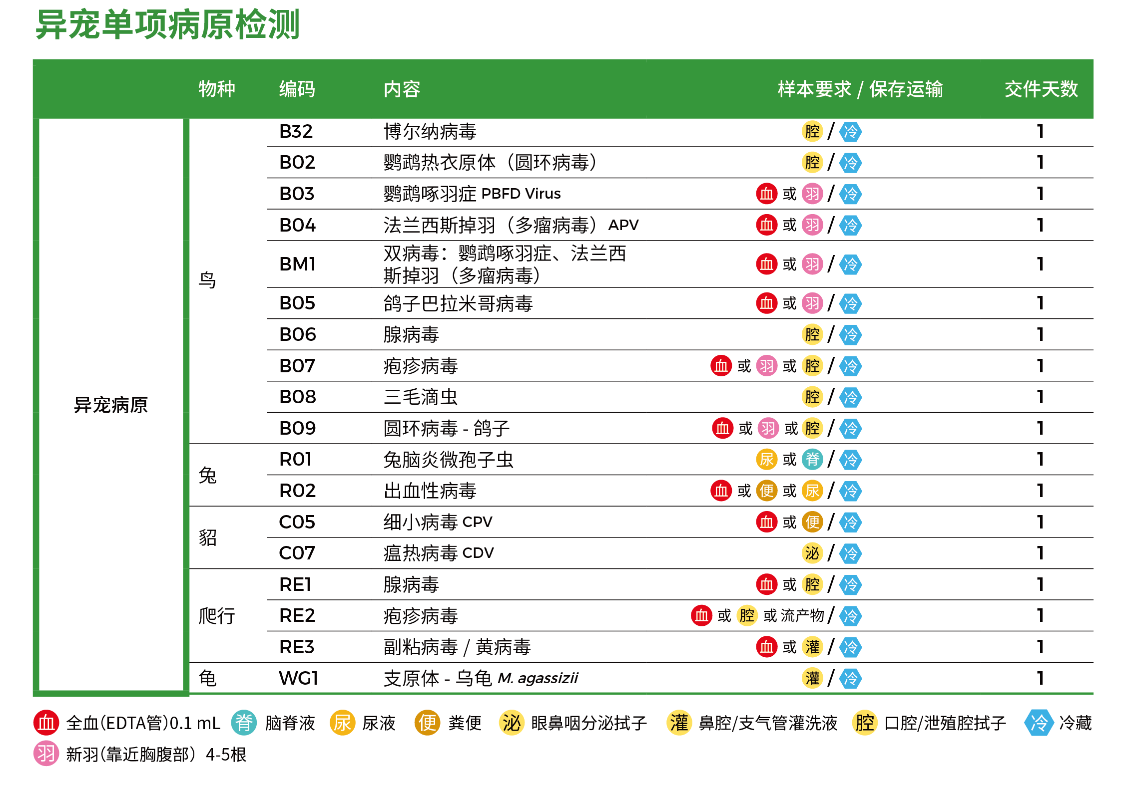 异宠单项病原检测—分子诊断检测项目表